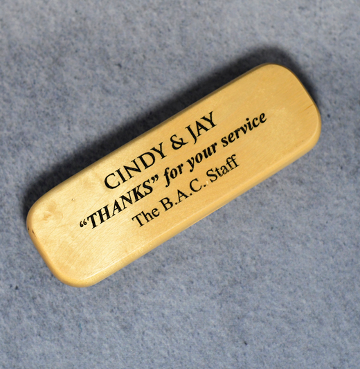 This pen set provides a beautiful alternative to the ordinary business gift. It is a gift that will be appreciated and used for many years. Precision laser engraving provides rich detail of your company's logo on the box and elegant individual personalization on the pen cap. The lettering can be gold color-filled.